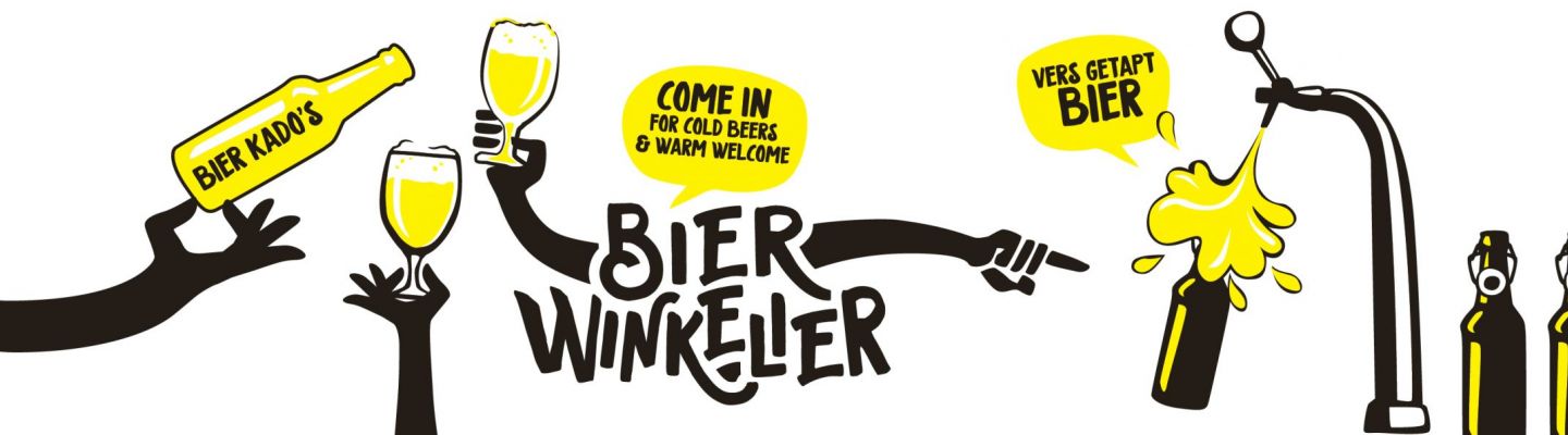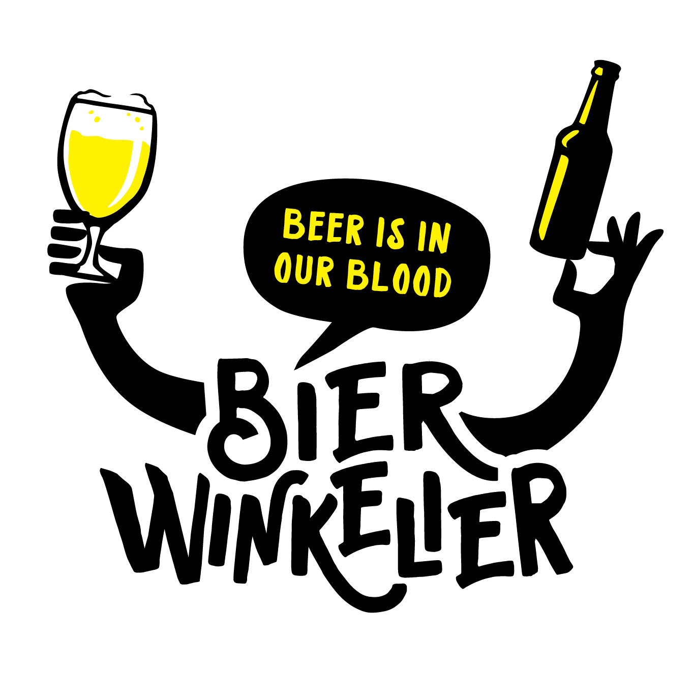 The name Bierwinkelier gets a dynamic typo with a handwritten appearance. The arms and hands are attached to the logo and enhance the human touch of the store and invite the customer to take a peek or even better a sip. The hands are visually connected to the brand and can be used without the name throughout the store or on online pages. For instance, they are handy to use to communicate the different kind of beers that can be purchased.